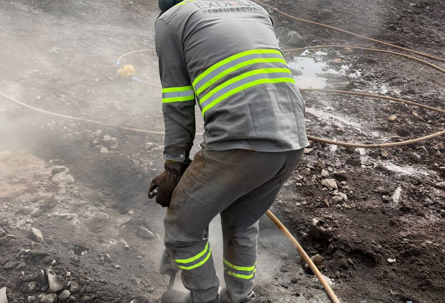 Perfuração de rocha para atirantamento e fixação de estrutura